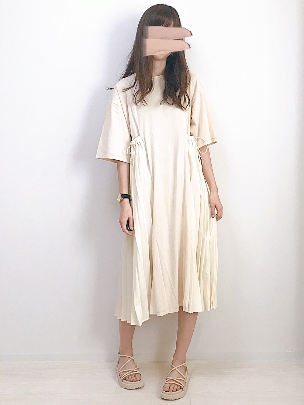 aikoのワンピース「ファッションインフルエンサー aoi* × INTER FACTORY サイドプリーツ切替カットワンピース」を使ったコーディネート
