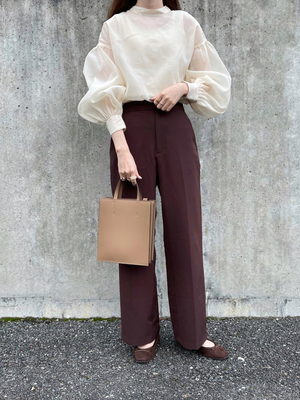 GUのシアーボリュームスリーブブラウス ぽわんとした袖がかわいくてお気に入り🍨🤍 パンツは昨年GUで購入したものです🥣 Instagram ☞ @aiko.01234