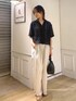 シンプルなモノトーンコーデもフリンジで立体感あるブラウスで華やになります。