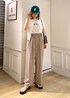 ニットプルオーバーをベストとして着用しました。 パールがアクセントなり大人カジュアルなスタイリング。