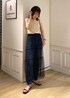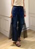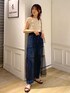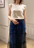 デニムにチュールスカートをレイヤードする事で、カジュアル過ぎないスタイリングに。