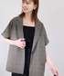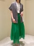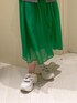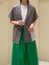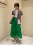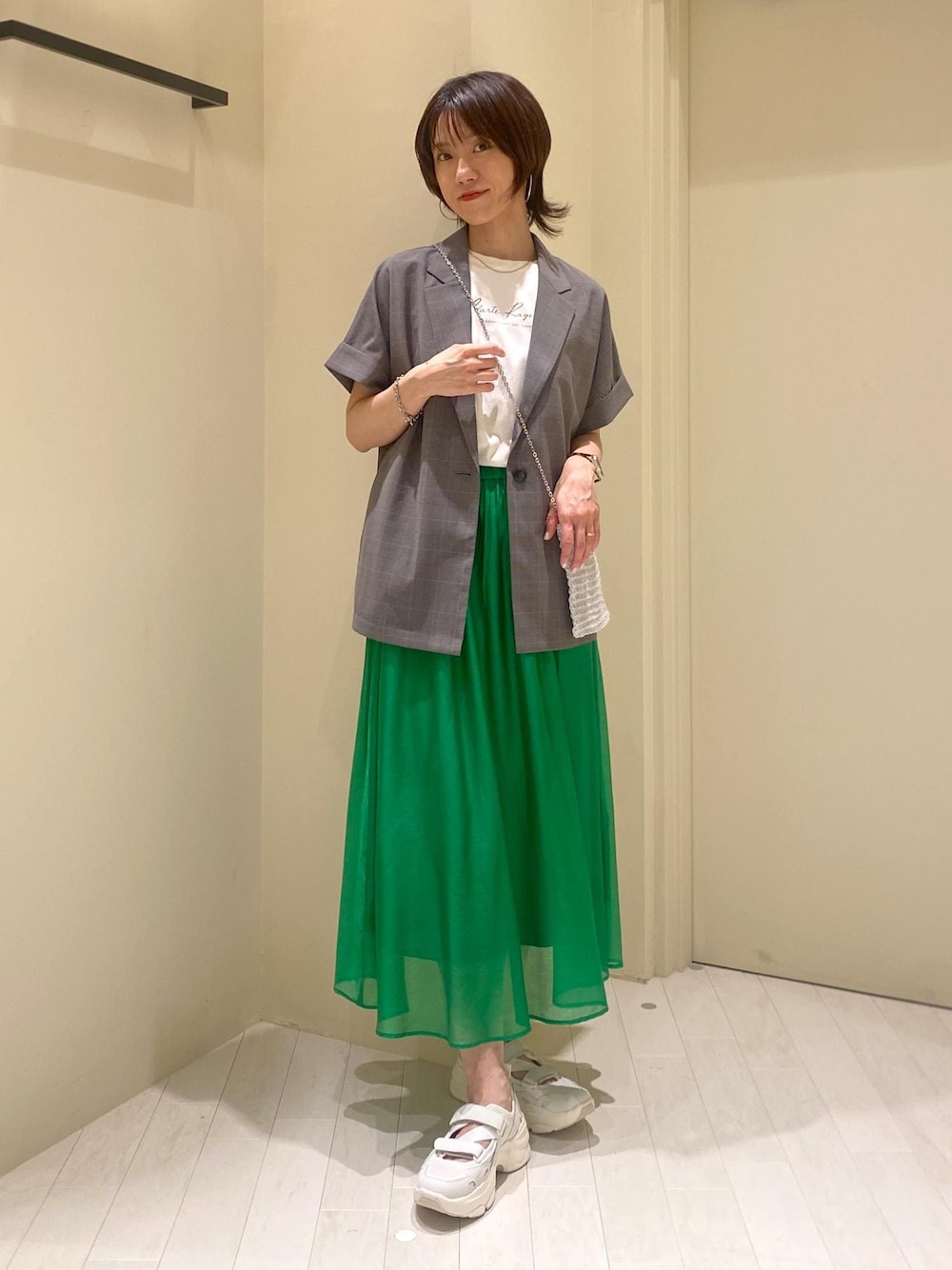 ジャケット×スカートコーデに、スポーツサンダルでスポーツミックスなスタイリング。 モノトーンにグリーンの差し色を足し、アクセントにしました。