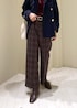 ネイビーアウター×ブラウンカラーでトレンド感かるスタイリング。オフィスカジュアルにもオススメ。