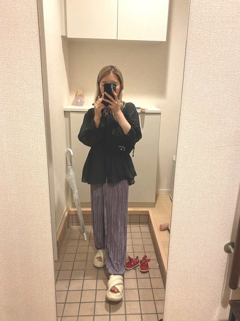 またまたayanoさんトップス👚 さらっと軽くていい透け感があってお気に入り🤭 poppyもお気に入りボトムス