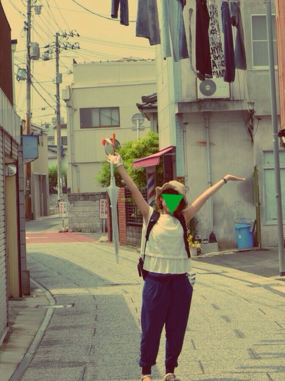 児島のジーンズストリートにて( ´ ▽ ` )ノ ブラウスは野菜のスタンプ柄♡パイル生地のパンツではずしたお気に入りコーデ(^^)