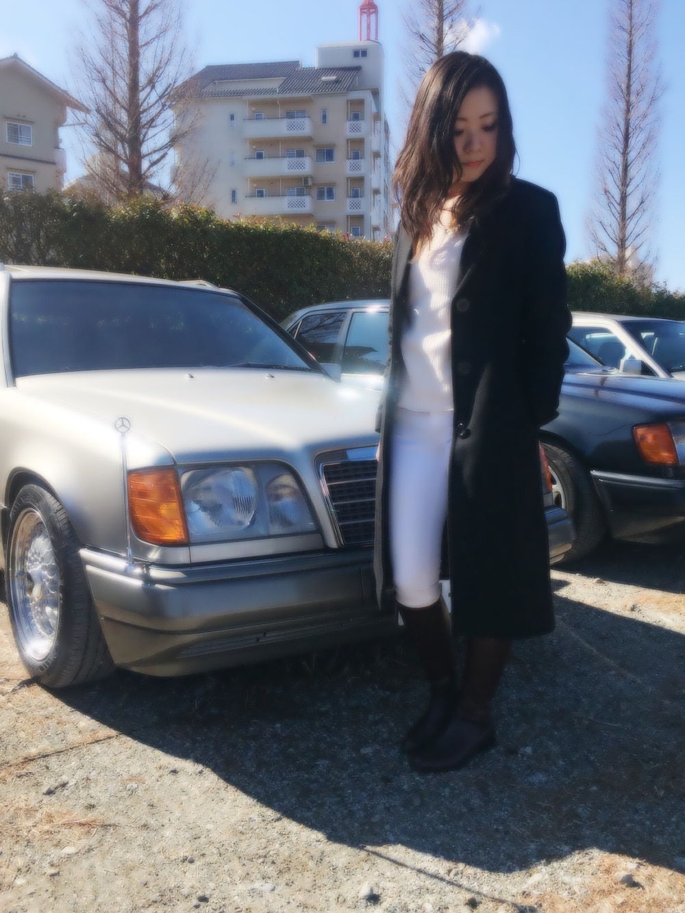 今日は124の撮影のために千葉へ♡ 予想以上に風が寒かったけど、お日さま出ててよかったー\(^o^)/ 撮影があるからピンクニットをおろして、大人コーデ☺︎