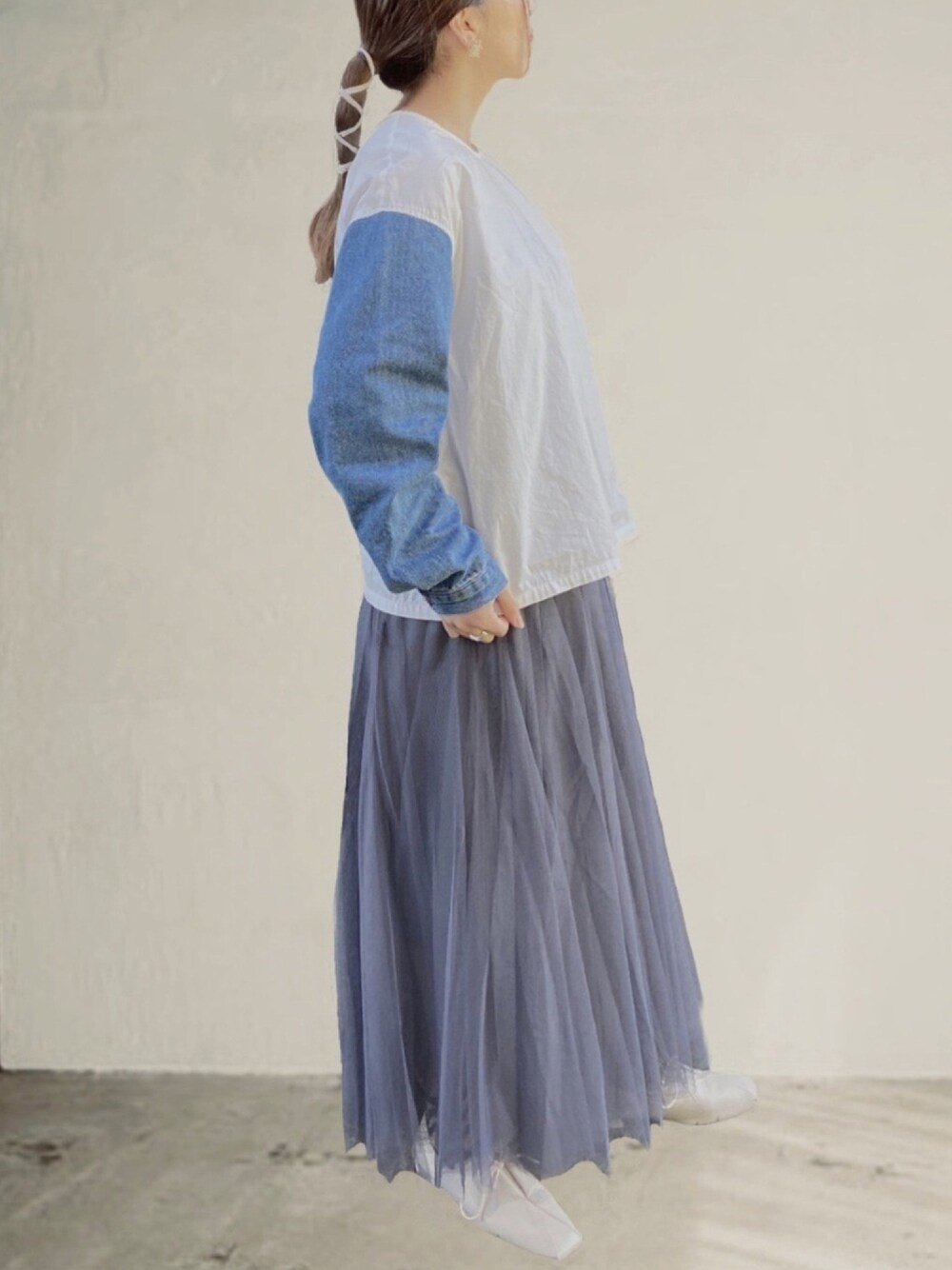 #ootd🐵🌼 -----------------------------✍︎︎ チュールスカートは甘めで可愛いイメージですが デニムとあわせてカジュアルダウン👌🏻 プラス足元はきちっと感を出して 大人っぽくしました◎ 🧺...アイテム𓅿☘︎︎ ▶︎▷𝗯𝗹𝗼𝘂𝘀𝗲 : 𝙺𝚊𝚜𝚝𝚊𝚗𝚎 ▶︎▷𝘀𝗸𝗶𝗿𝘁 : 𝚏𝚒𝚏𝚝𝚑 -----------------------------✍︎︎ ご覧いただきありがとうございます いいね / フォロー / フォルダIN とても嬉しいです(〃ω〃)♡ ご連絡はInstagramのDMからお願いします ▹◃┄▸◂┄▹◃┄▸◂┄▹◃┄▸◂┄▹◃ 別shot載せてます こちらもフォローよろしくお願いします🧸 𝕀𝕟𝕤𝕥𝕒𝕘𝕣𝕒𝕞 ➪ @marron_wear