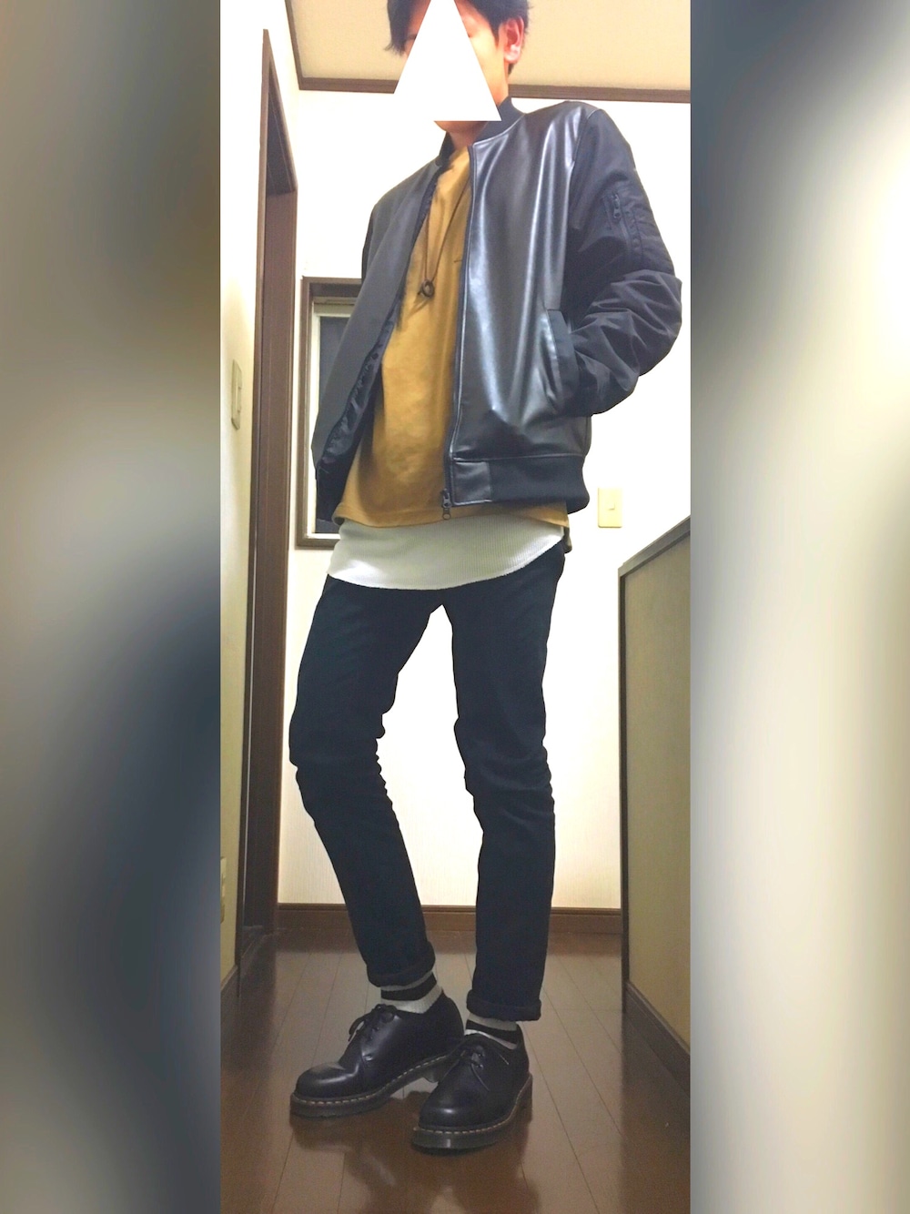 シンプルにレイヤードを楽しむコーデ。 個人的にこのアウターが引き立つこのコーデは気に入ってます。 出掛けた後撮ったので、シワ目立ちますけど…