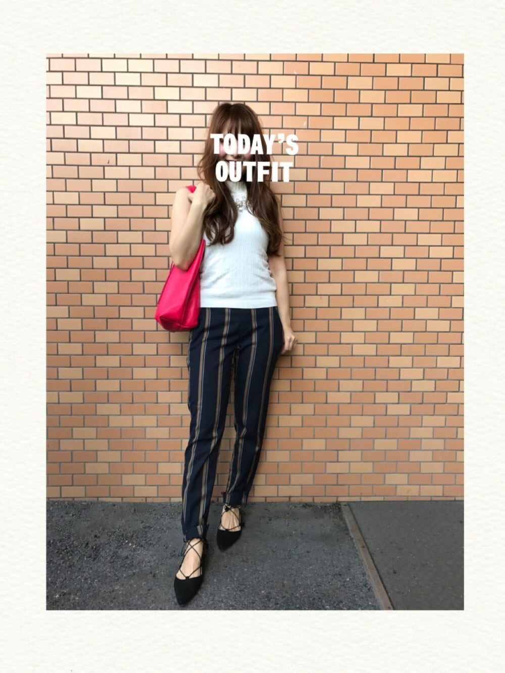 今日は、暖かかったから ノースリーブ♡ ストライプのパンツは シルエットが綺麗でやっぱり好き♡