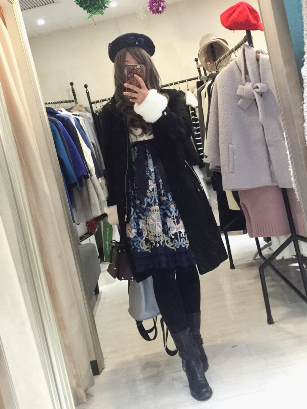花色繁复的裙子最好搭配纯色的外套哦~