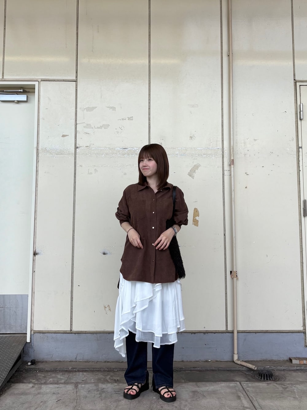 ご覧頂きありがとうございます どの色味も可愛い秋カラーシャツ🌀🤎デニムを合わせるだけでなく、ミディ丈のスカートをレイヤードしたことで、カジュアルすぎない、ガーリー要素を取り入れたスタイリングにしました ぜひ店頭でお試しください✩.*˚