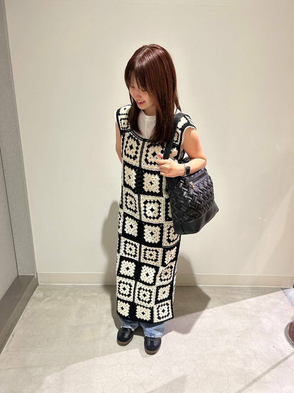 ご覧いただきありがとうございます 編み柄がポイントのワンピースは、薄手で軽い生地感になっていて、インナー次第で秋先までお使いいただけるアイテムになります🍁また、サイドにスリットも入っているので、動きやすいデザインです