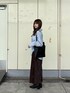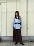 トレンドのブルー×ブラウンコーデ👔🤎 シャツは大きめのシルエットなのでベルトでウエストをしぼり、ボタンを上から2つ開けました!このコーデだったら骨ストさんでも着ぶくれ心配ナシです☆