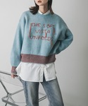 ブルー×オレンジの配色が可愛い推しトップス🧡🚰 ニットに合わせるボトムスは、形がしっかりしていたり厚手のものの方が上半身のボリュームが気になりにくいのでオススメです- ̗̀ 𖤐