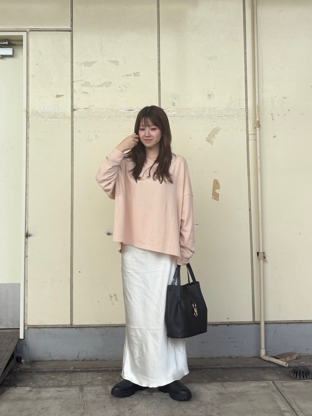 今季気になってるベビーピンク🎀サテンのスカートを合わせて、かわいいオトナなコーデにしました!トップスはモチモチで肌触りさいこうです