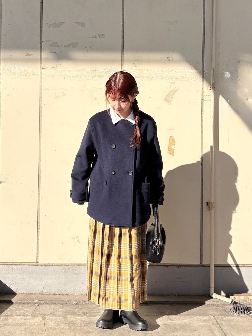 お気に入りコーデ🤳🏻🪴 シンプルなアウターには色物や柄物が映えます♩ 特に冬はシンプルなコーデになりがちなので、挑戦しやすいチェックスカートオススメです