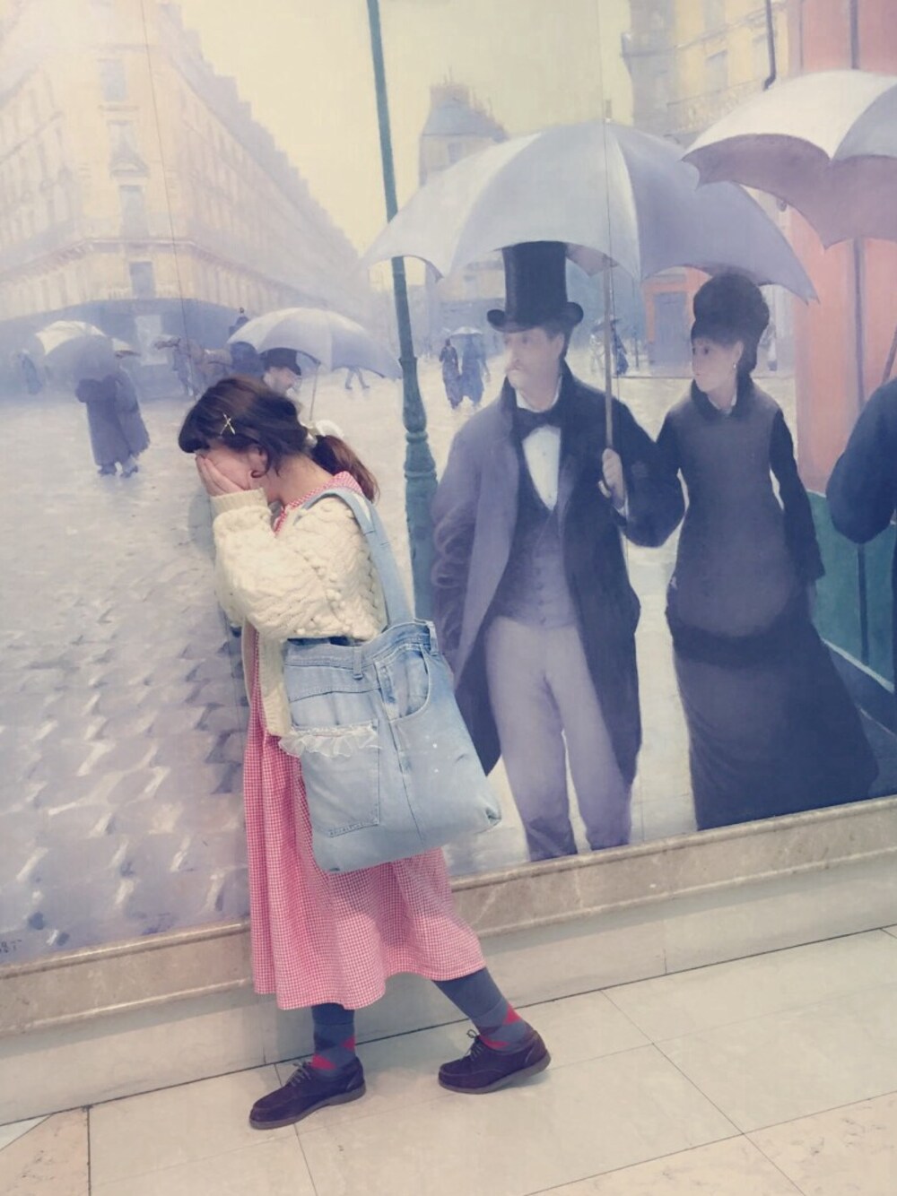 ハンドメイドのデニムの鞄をもってお出かけしました。 髪はリボンでおめかししておりまふ