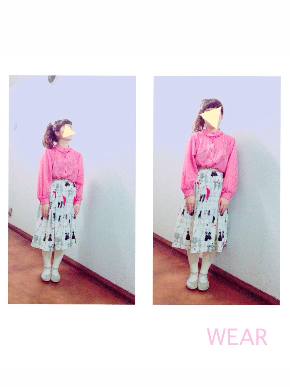 首元がと袖のとこが ふりふりしたブラウスはお気に入りだよー!💕 あと、スカートはちょっと大きいけど、柄はすごくかわいい!髪の毛も、楽チンでかわいい 少し横にポニーテールしてリボン!✨✨ 今日は金曜日で、るんるんだったよーん!🌼💛