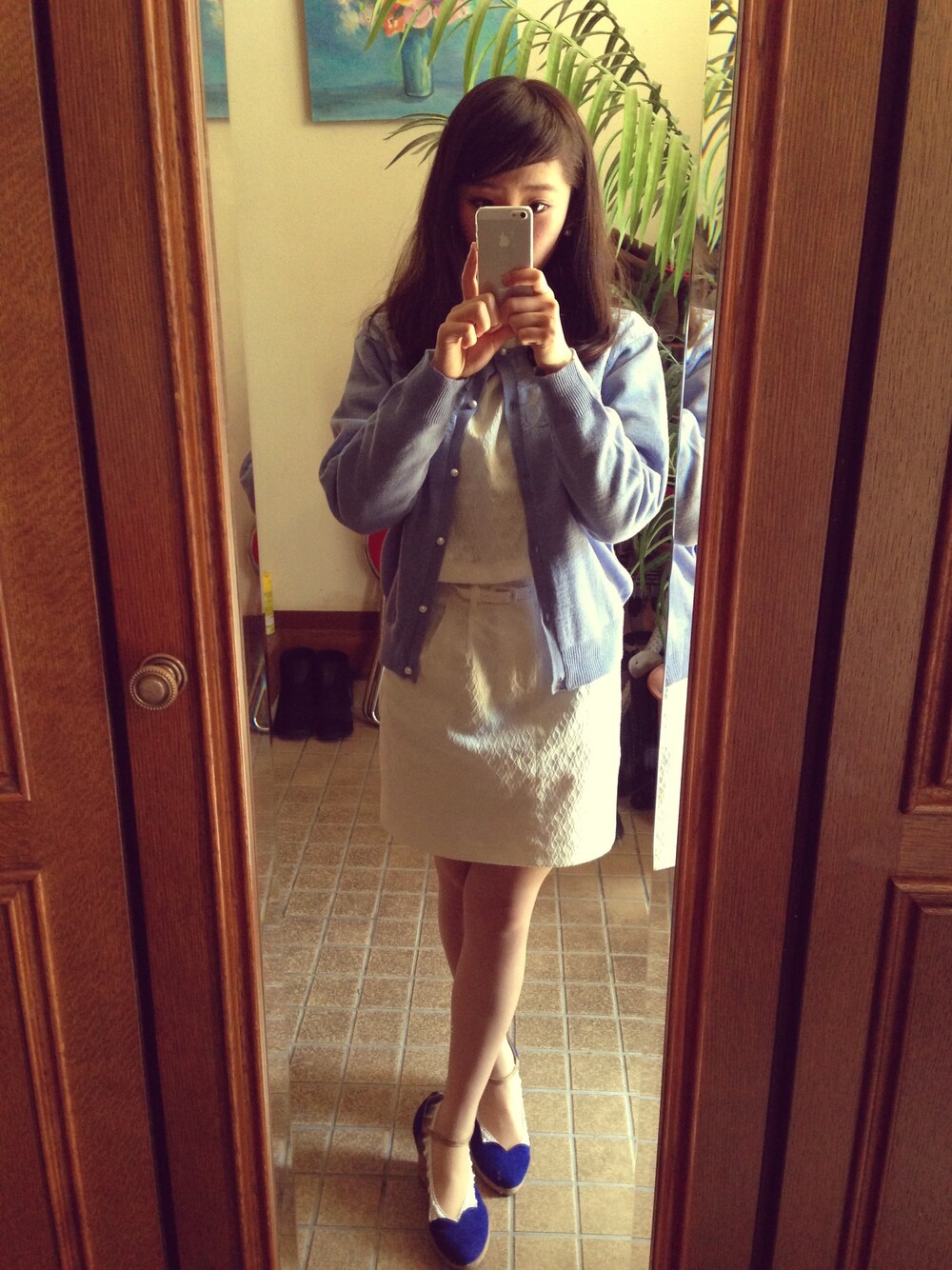 高級料理店へランチしにいったよ♡ 白のセットアップ×水色カーディガン