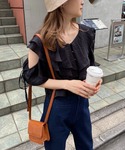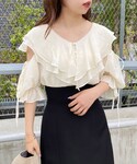 156cm/骨格ウェーブ オールブラックコーデ🖤 [tops] 襟元の二重のフリルが華やかなブラウス♡ 肩の開き具合は調節可能です。 生地に艶があるため、夏のブラックでも重たくなりません☺️ サラッとしていて、しわになりにくく、肌触りも良いです◎ お袖はキャンディースリーブのため華奢見えも叶えてくれます。 [skirt] ラインが綺麗で大人っぽいロングスカートです🫧 フロントに深いスリットが入っており、抜け感や女性らしい印象を与えてくれます♡ 腰回りがすっきりするハイウエストのデザインのため、スタイルアップも叶います🗝