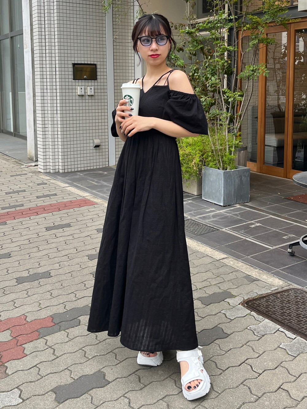 156cm/骨格ウェーブ [one-piece] ヘルシーな肌見せが叶うロングワンピース♡ 袖はボリュームがあるため 二の腕を隠せてスッキリ細見えします✨ 下は少し透け感があって抜け感が出せるため 夏のブラックコーデも重たくなりません♡ 厚底のサンダルと合わせると 今年っぽいカジュアルな着こなしができます◎ [sandal]Lサイズ これから大活躍間違いなしのスポサン✨ しっかり厚底なので盛れること間違いなし◎ 24cm甲高幅広の私はLサイズで ぴったりでした♡