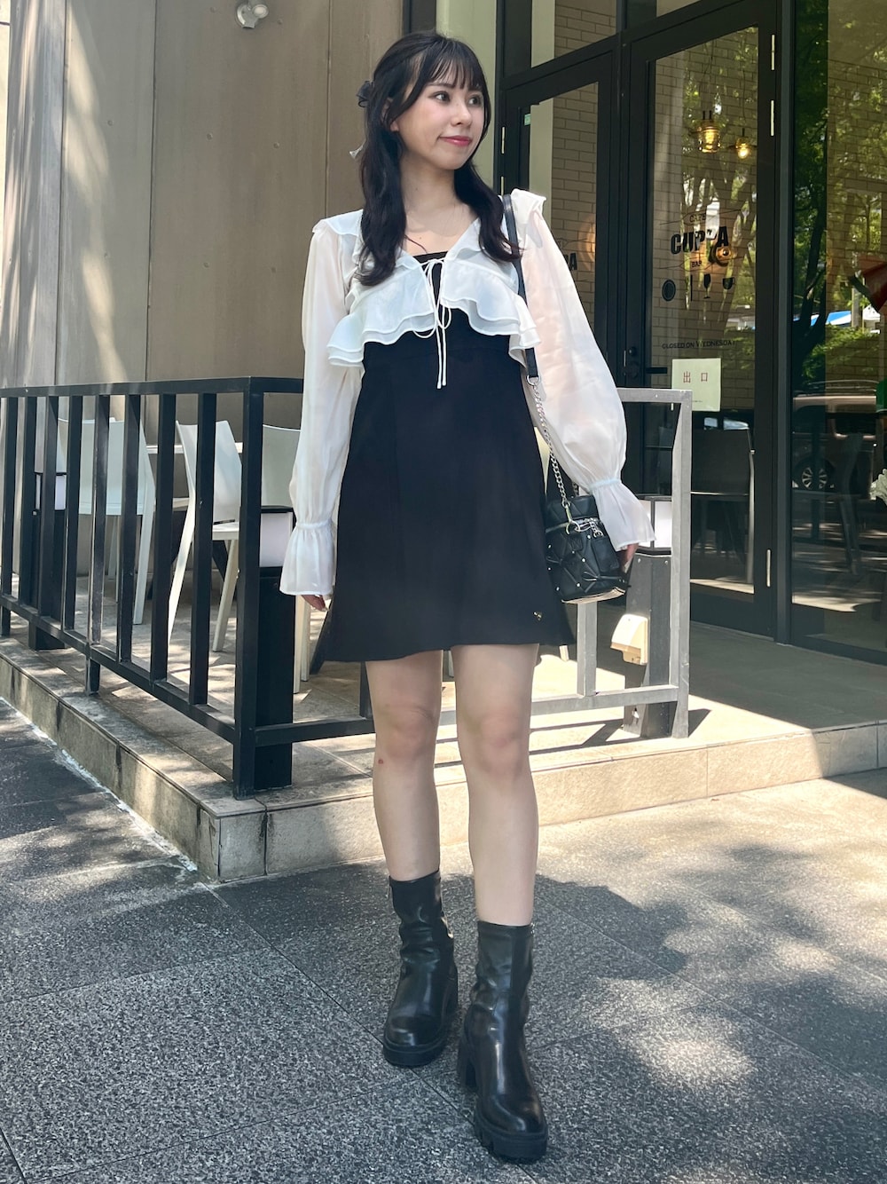 Ai(one after another NICE CLAUP)のワンピース「【スタッフ企画】ボレロsetミニワンピース」を使ったコーディネート