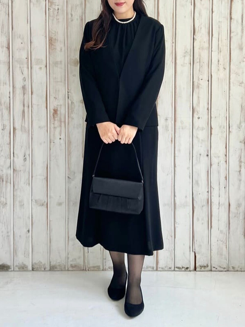 AIMER(AIMER)のスーツセット「【喪服・礼服・WEB限定】Vネックジャケット・ラグランスリーブマーメイドワンピース 2点セット ブラックフォーマルアンサンブル」を使ったコーディネート
