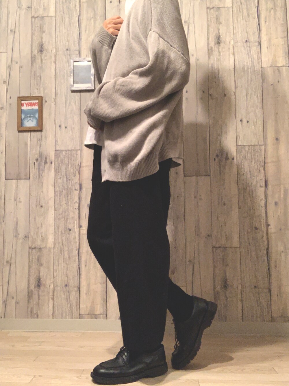 ご覧いただきありがとうございます。 remerのカーディガンはこの秋トップクラスに活躍してくれました😎 黒のワイドパンツと合わせてます。厚手の質感のものを選んだので全体的にかなり柔らかい印象に仕上がりました。 シルエット大好きだし保温性も高いので、トップスもボトムスもまだまだ活躍してもらう予定です!