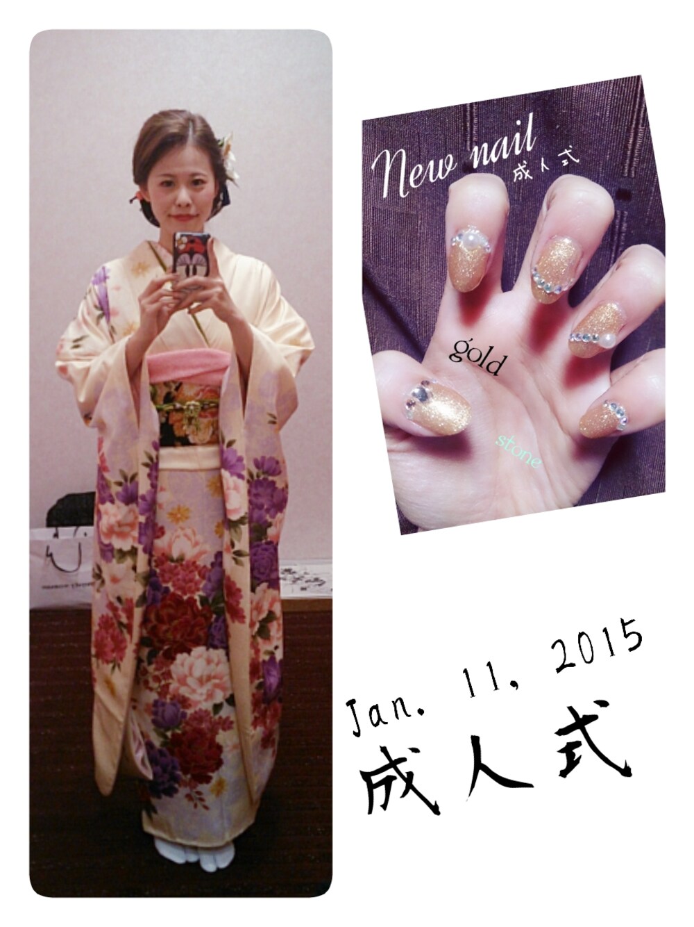 成人式でした! この日のことを忘れず もっと素敵な大人になれるよう 精進していきたいです。 振袖はベージュのような黄色っぽい生地で、 ポイントで緑を取り入れました!