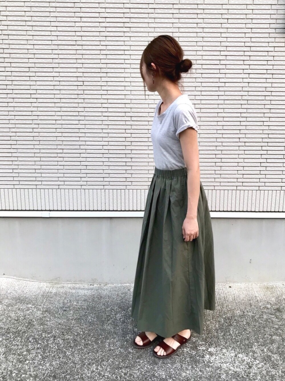 全身ぷちぷらコーデ ⁑ \ grey khaki brown / earringは自分で作ったhandmade サンダルと色を合わせてみました