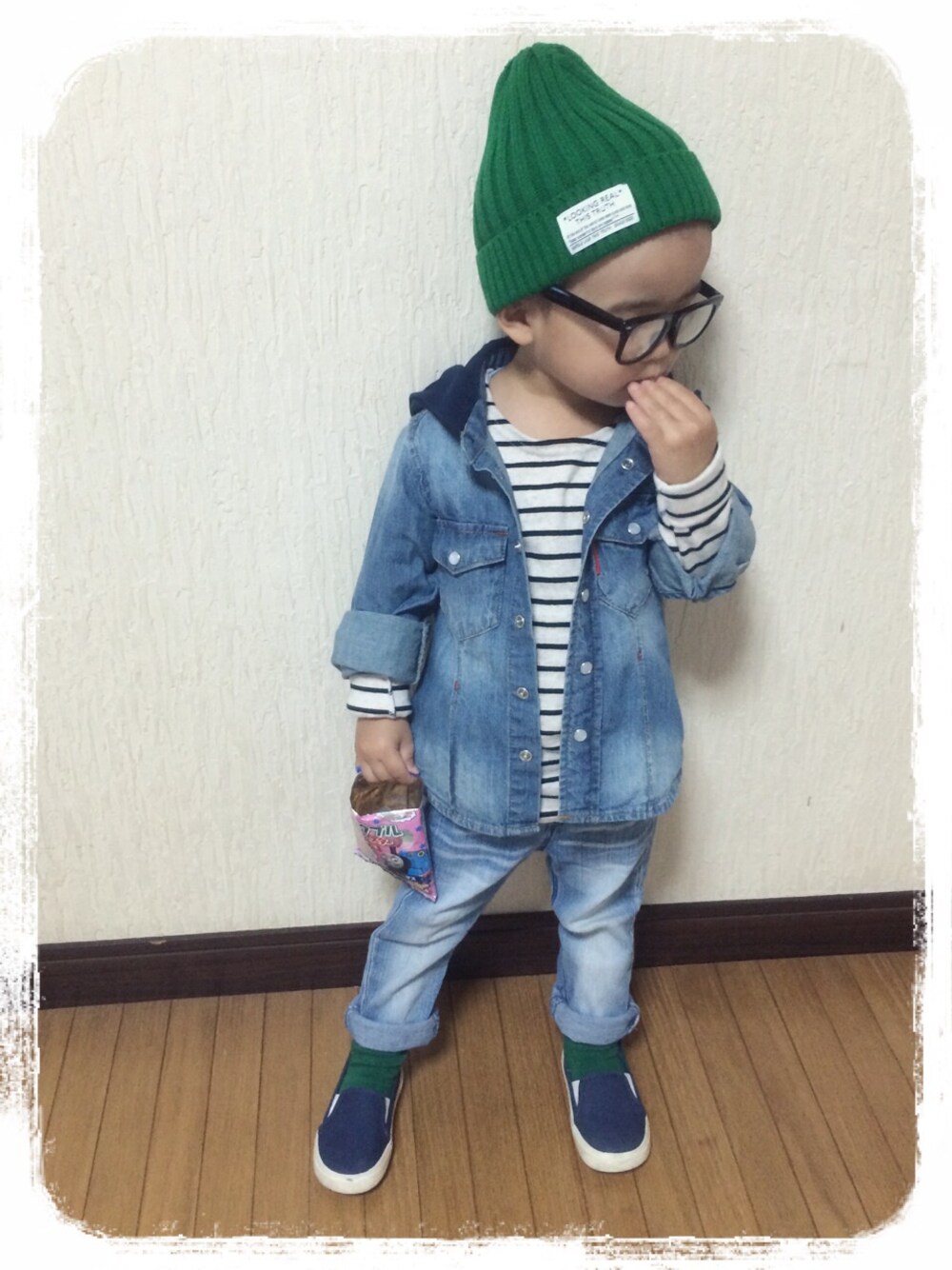 撮り直ししました♩ トーマスのベビースターが大好物です。 デニムオンデニム難しいなぁ!
