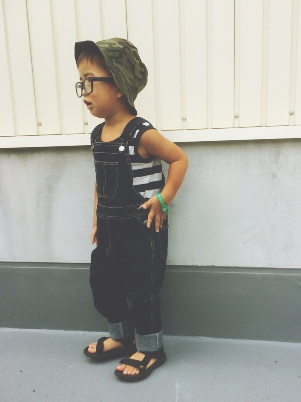 いつかのコーデ。 サロペットやっと着れた♡母も息子もお気に入り♡