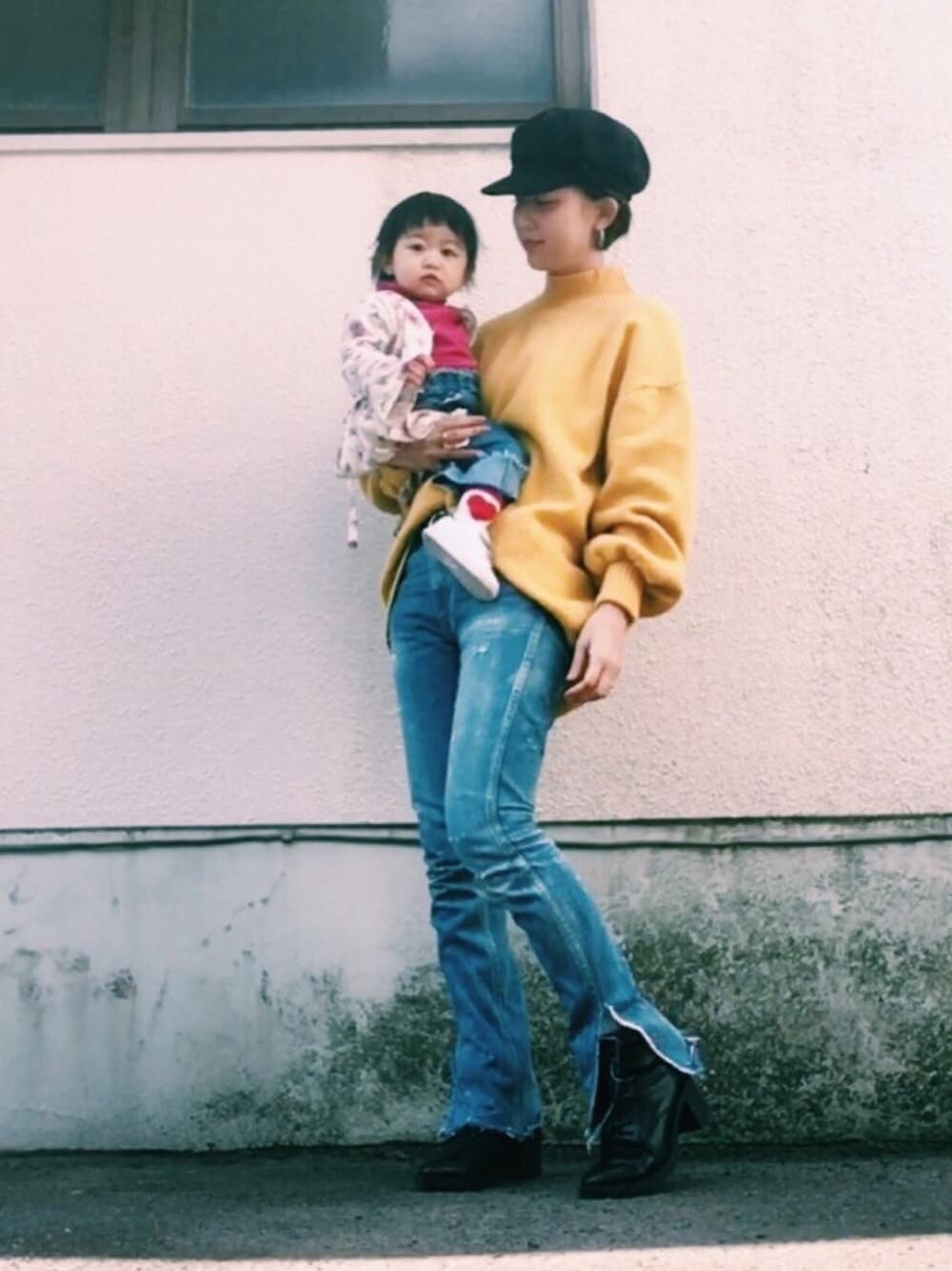 ゆったりしたニットは、フレアデニムですっきりまとめました。 デニムにブーツが気分です💐 見ていただきありがとうございます💓 instagram/_aimine_