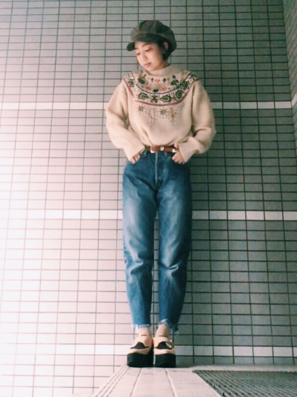 春ニット着納め。 雨に濡れたくないので、パンツはストレートデニムです。 見ていただきありがとうございます💓 instagram@_aimine_