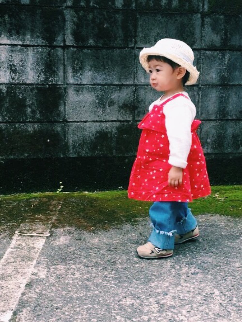 たまにのムスメコーデ。 ワンピ×デニムで、リンクコーデにしました☺︎ petit mainのワッフルカットソーは、夏用のキャミやワンピと重ねれば今から使えると思い、グレーと2色買いしました! 見ていただきありがとうございます💐 instagramは@_aimine_