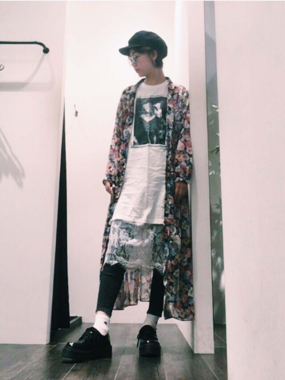 久しぶりにTシャツワンピを着てみたら、やっぱりスースーしたので、スキニーを合わせました。 Tシャツワンピはレースワンピがレイヤードされてる様なデザインになっていて、1枚できても可愛いので気に入っています。 見ていただきありがとうございます💐 instagramは@_aimine_