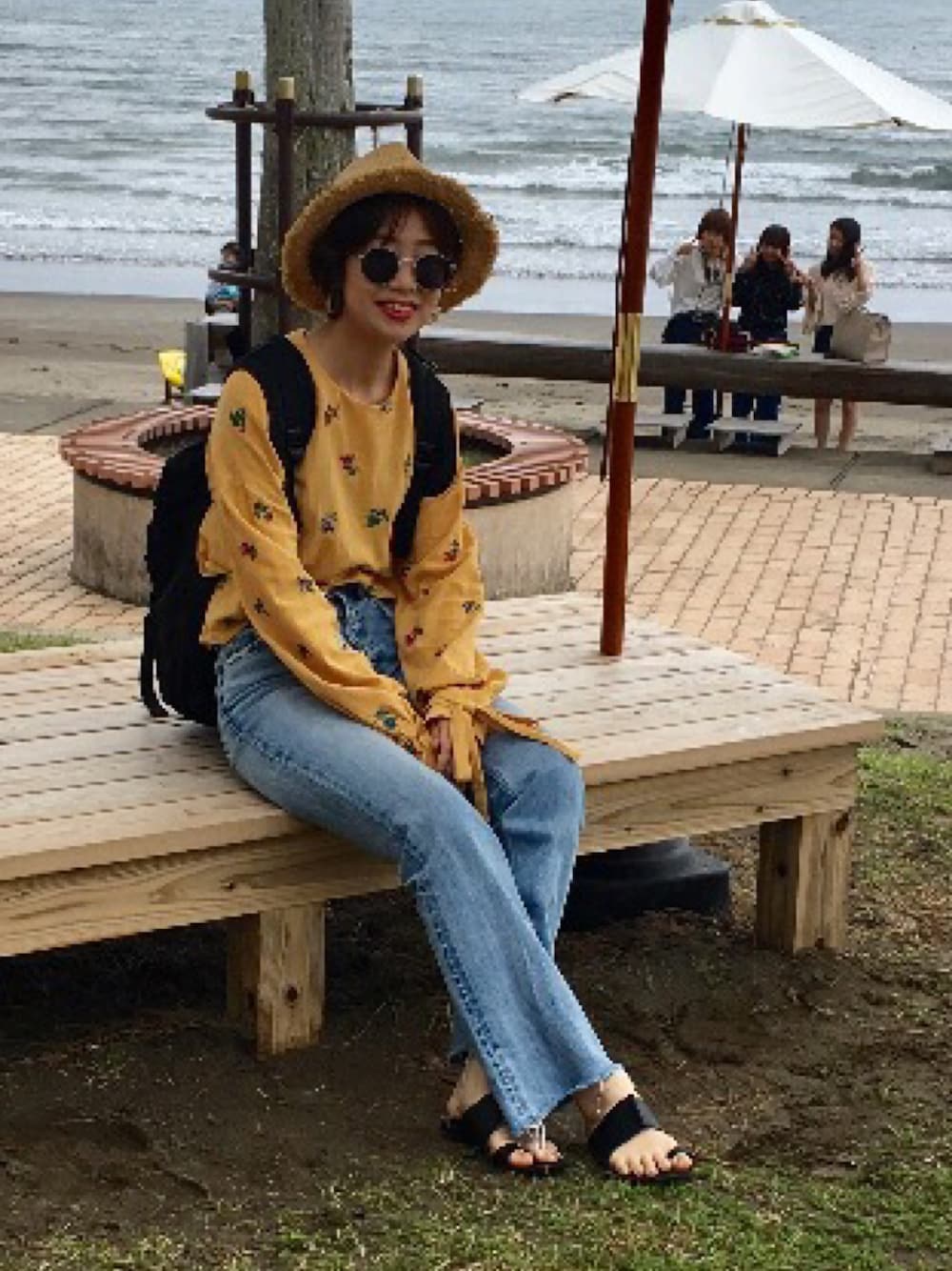 青島の海に出かけたので、ペタンコサンダル×デニムでラフスタイル。 暖かくなって着たので、海に着て行くスタイルが気になります。 見ていただきありがとうございます🌺 instagramは@_aimine_