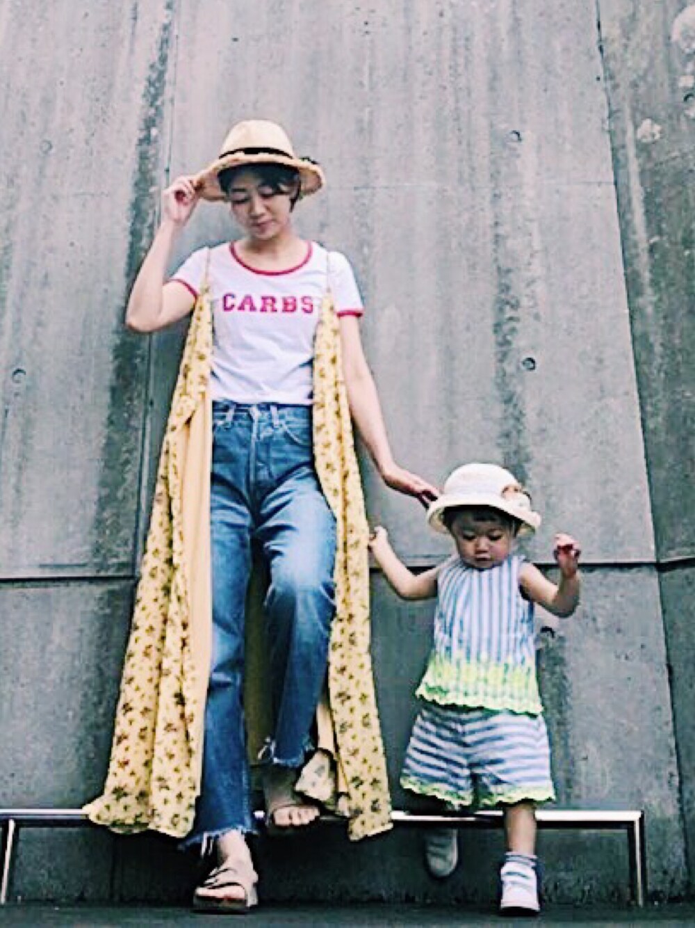 コーデ撮りしてると、真似して入ってくるムスメ。可愛いなぁ(笑) 今日はjouetieのカラーフラワーキャミワンピを開けて着ました☺︎ いつも見ていただきありがとうございます🌴 instagramは@_aimine_