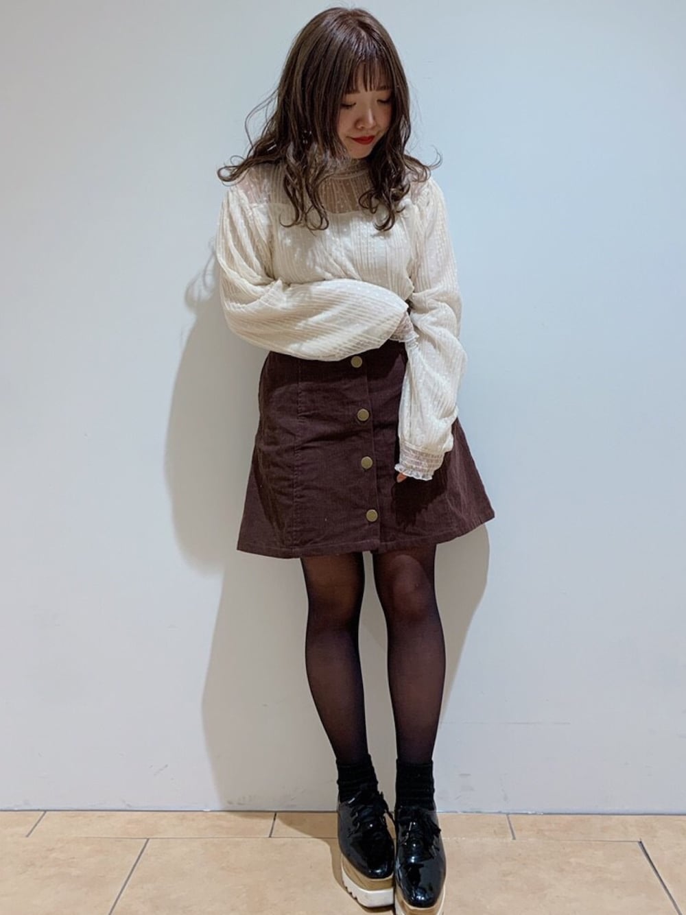 透け感のあるブラウスは 大人ガーリーに着るのがおすすめ❤︎ ブラウンだと優しい印象になります🧸💗