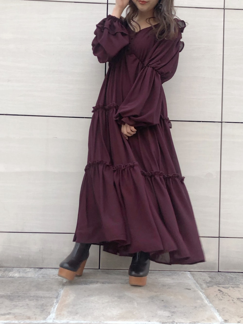 aiminnのワンピース「レディフリルロングワンピース」を使ったコーディネート