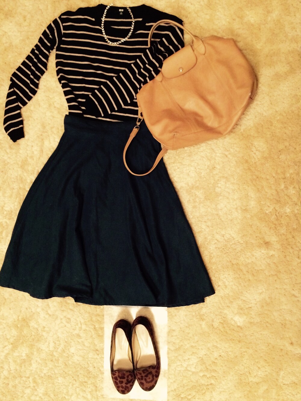 トップス:ユニクロ スカート:フリーズマート バッグ:Longchamp