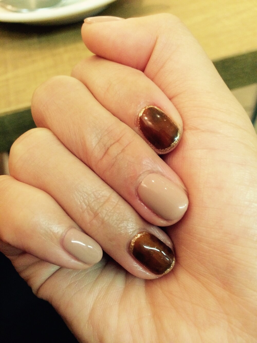 濃いめのべっ甲とこっくりベージュ。 仕事柄ゴテゴテにはできないのでこれくらいが限界です(・_・; 次はツィード柄にしようかな。♩