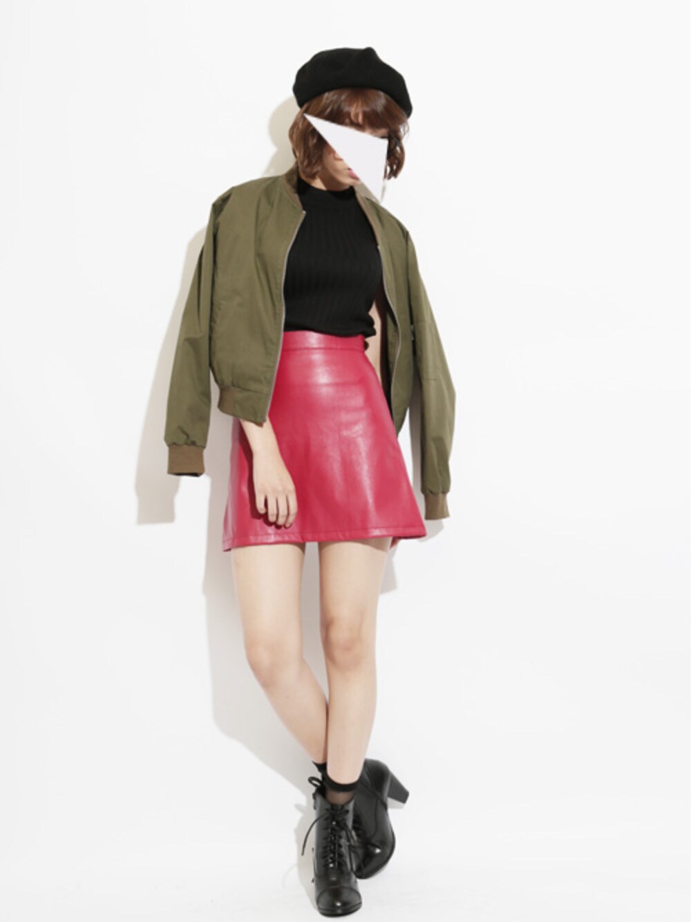 秋のショルダージップMA-1と目を惹くファイクレザーミニSKで秋コーデ♥