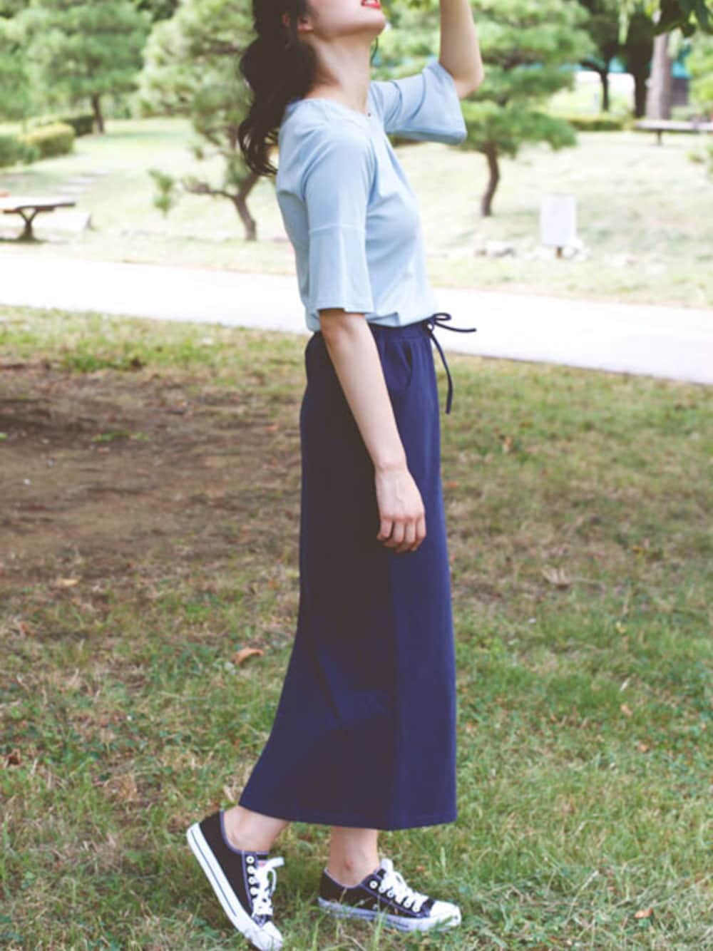 スリット入りで足さばきも軽やか!コットンスウェットを使用したロングスカートコーデ♥