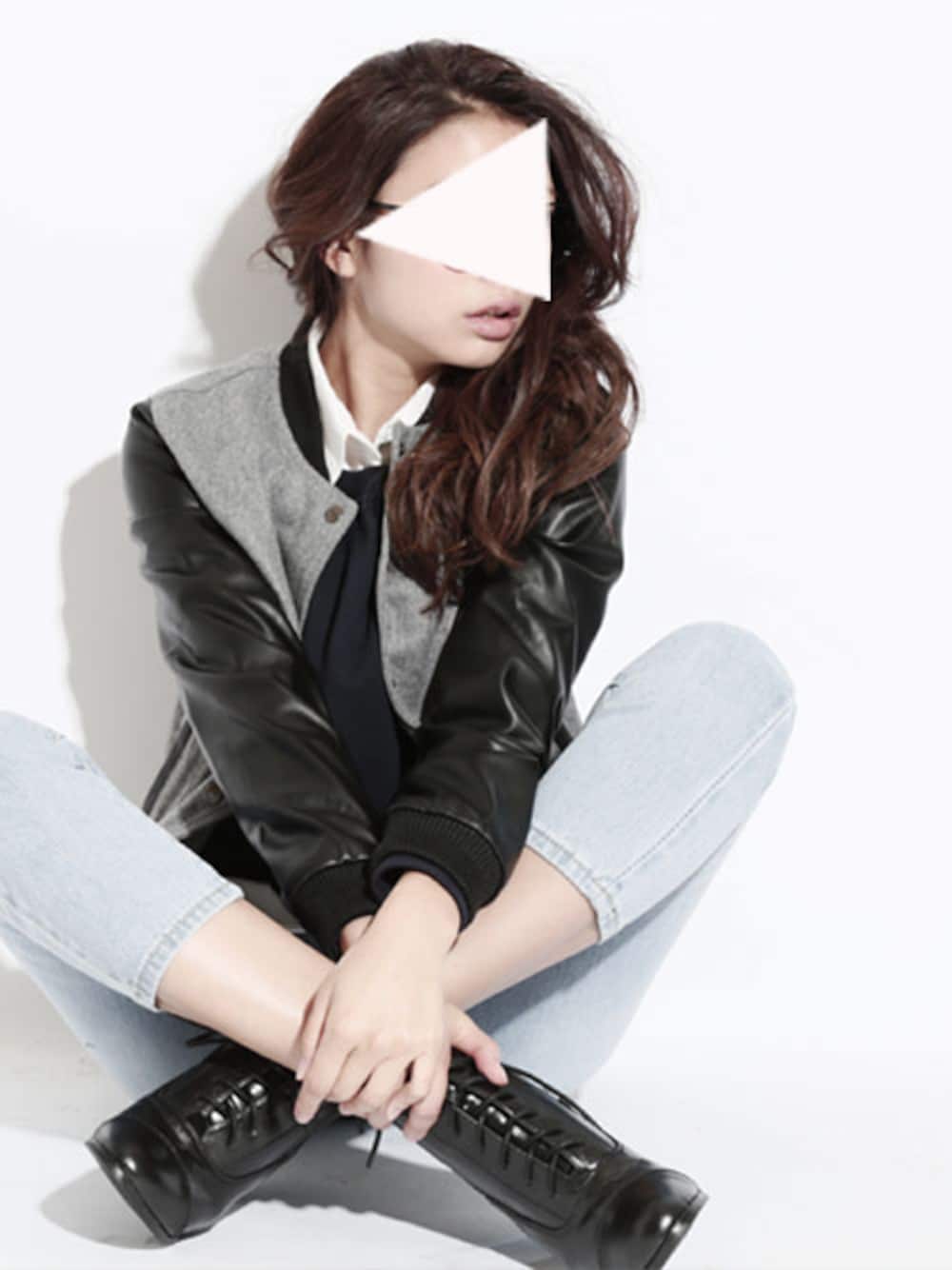 aimoha(aimoha online shop)のスタジャン「バイカラーレザースリーブメルトンブルゾン」を使ったコーディネート