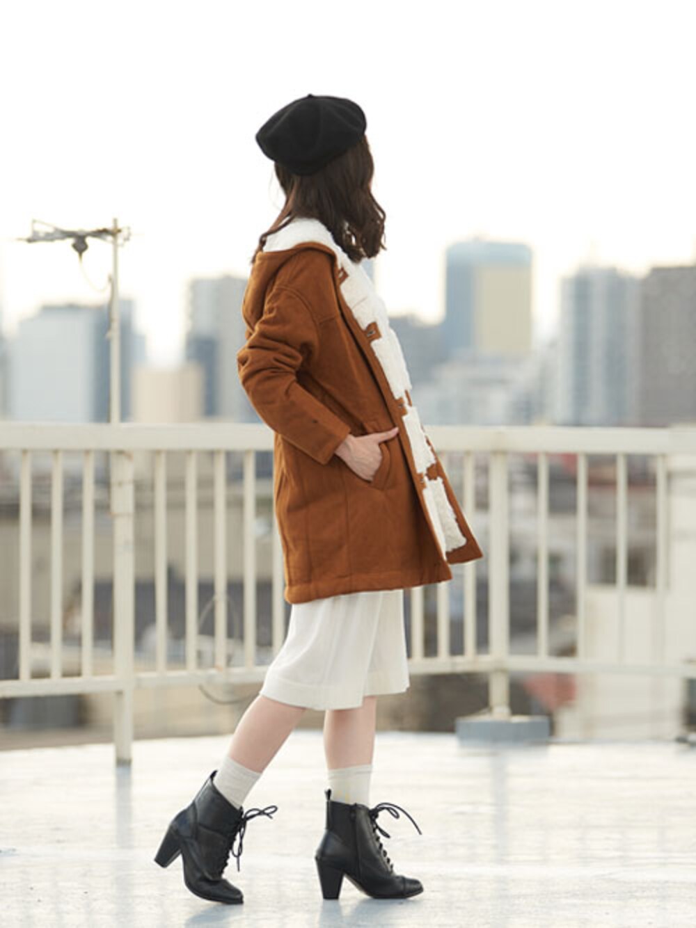 ムートン調♥裏ボアアウターとホワイトニットワンピースでカジュアルコーデ