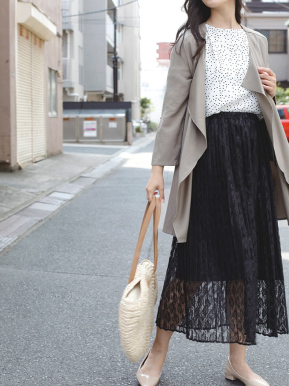 花柄レースがポイントのチュールスカート 広がりすぎずロング丈は大人でも取り入れやすいフェミニンなロングスカート。 スニーカーと合わせてカジュアルでもOKなアイテムです。 ウエストゴムでストレスフリーな履き心地。 丈感長めで体系カバーできるブラウス フリルが施されたネックデザインは上品にスタイルアップできます。 五分袖で程よく肌が見えるので、コーディネートの全体を軽やかな印象に見せてくれます。