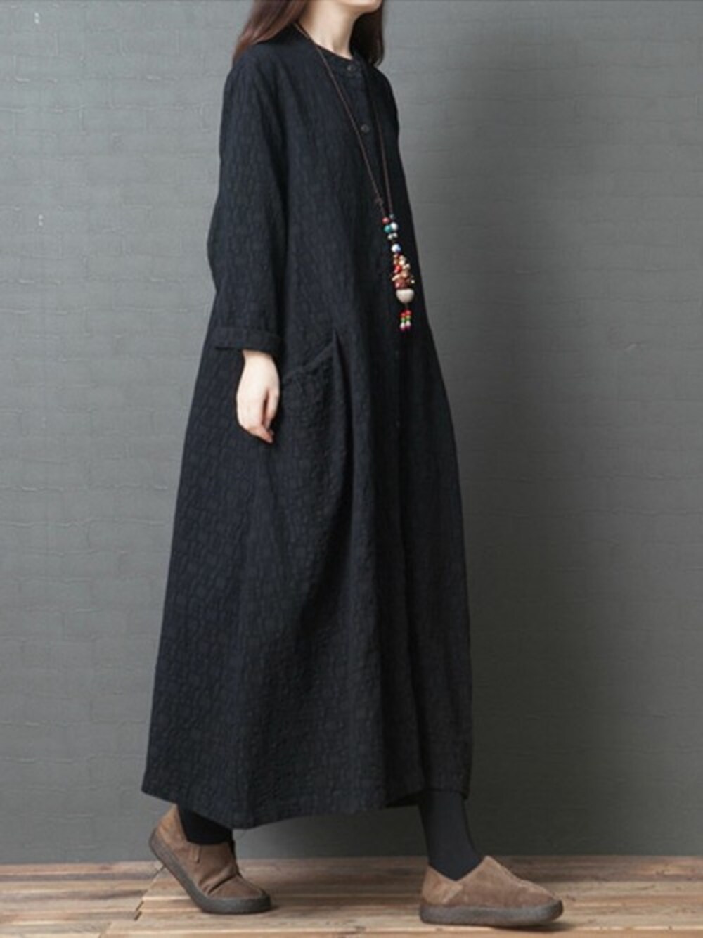 ゆったりなシルエットな綿麻ロングワンピース 綿麻素材のロングスリーブワンピース。 触り心地よく、ゆったりなシルエットで楽々着用。 コーデに悩む日はサラッと羽織るだけ。 ボタンを外すとカーディガンとしてもお使い頂ける2wayタイプを実現。