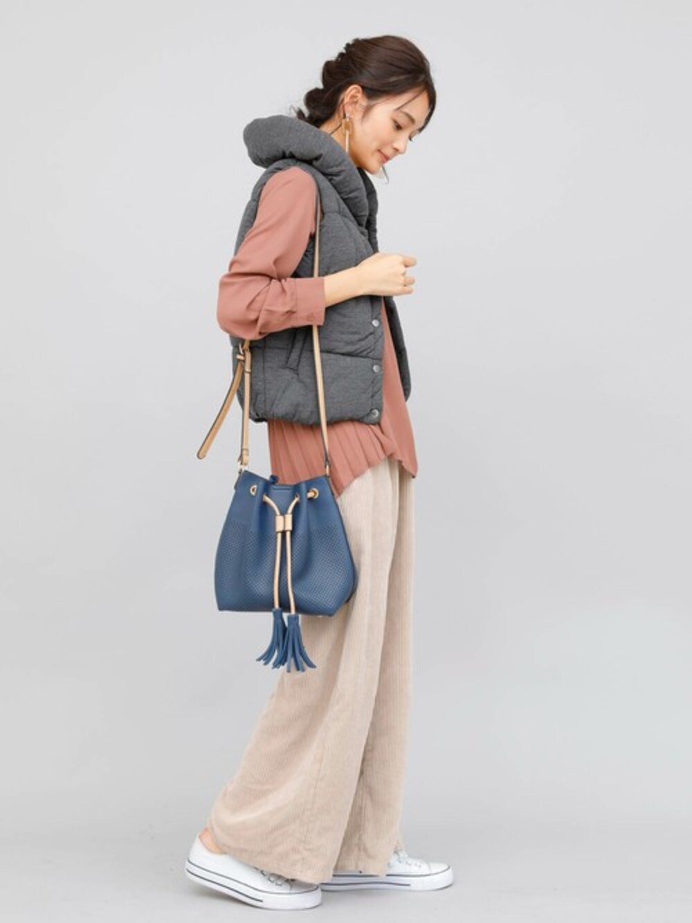 aimoha(aimoha online shop)のベスト「ボリューミー襟中綿ベスト」を使ったコーディネート