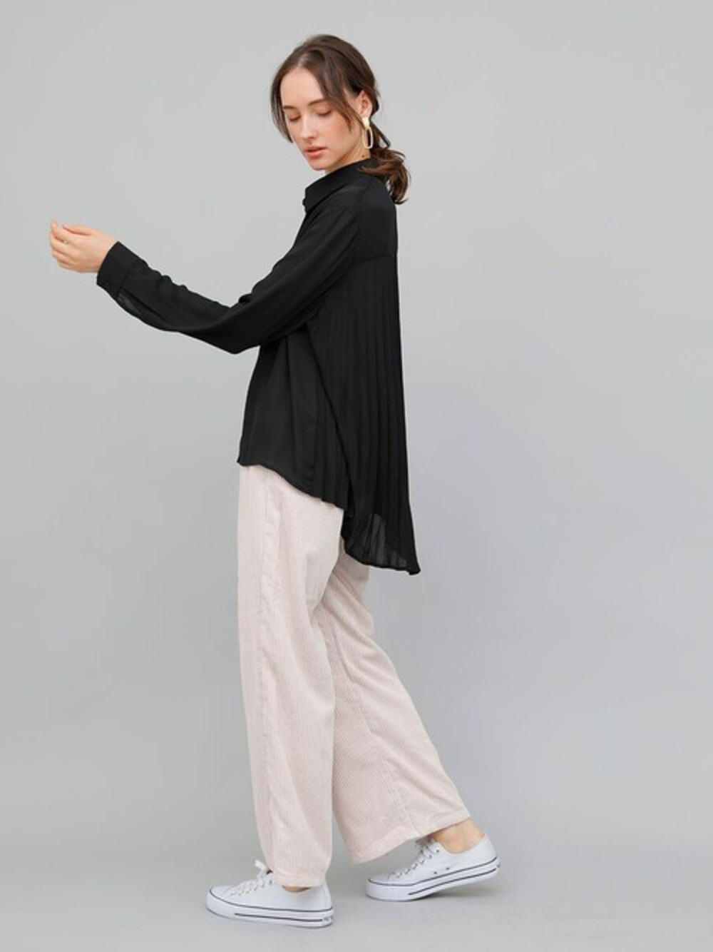 コールテンパンツ コーデュロイ素材持っているだけであなたも今期のトレンド入り。 それほど流行りのアイテム。少しゆったりとしたワイドシルエット、落ち感のある印象に。 ニットやカジュアルアウターとの相性も抜群で、秋冬らしい深みのあるコーデになりそう。 ウエスト:バックゴム